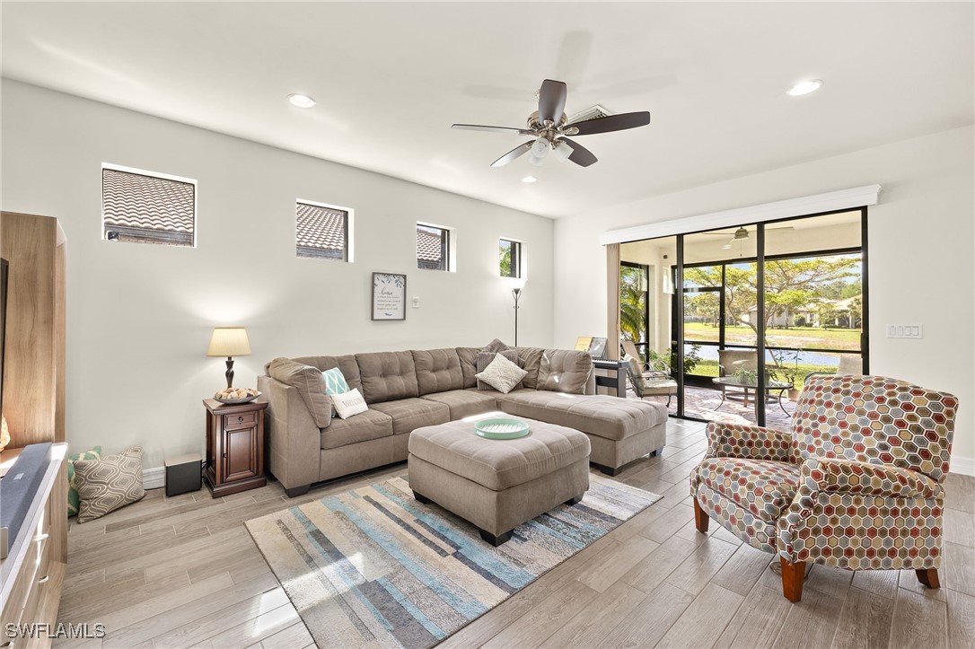 Welcome to your dream home in the sought-after community of Bridgetown! This beautifully upgraded Summerwood Plan offers 3 bedrooms, 2 baths, a spacious den, and a 2-car garage -- the perfect blend of comfort, style, and everyday functionality. Step inside and fall in love with the open-concept layout, where the heart of the home is a chef's kitchen featuring quartz countertops, stainless steel appliances, a stylish tile backsplash, large island, and a generous walk-in pantry. Ideal for entertaining or a quiet night in, the layout flows seamlessly into the bright and inviting living space. You'll find elegant wood-look plank tile flooring throughout the main areas, plush carpet in the bedrooms, and plantation shutters for that extra touch of charm. French doors open into a versatile den -- perfect for a home office, reading room, or guest space. The primary suite feels like a personal retreat, with a large walk-in closet and a spa-like bath featuring dual vanities and a walk-in shower. Enjoy Florida living all year long on the covered lanai, surrounded by lush landscaping and enhanced with hurricane-ready accordion shutters and screens for peace of mind. The spacious garage provides ample room for storage, beach gear, or hobby essentials. Located in the gated community of Bridgetown, you'll enjoy resort-style amenities including a clubhouse, resort and lap pools, state-of-the-art fitness center, tennis and pickleball courts, bocce, a fire pit and BBQ area, and a tiki bar -- all just minutes from shopping, dining, and entertainment. Don't miss your chance to own this exceptional home -- schedule your private showing today and start living the Bridgetown lifestyle!